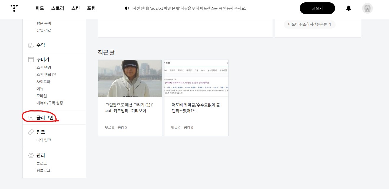 그러면 관리/글쓰기/로그아웃 중에 관리버튼을 눌러주세요~