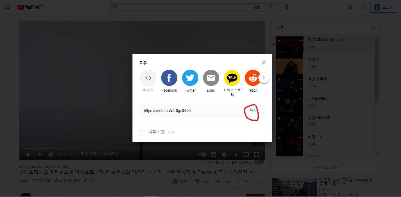 1. 유튜브에서 가져올 영상 골라서 (공유) 를 눌러주세요!
